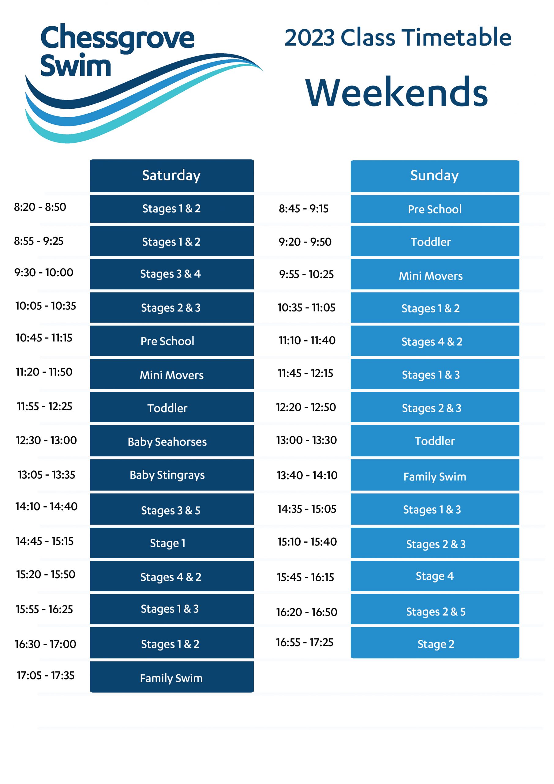 For all enquiries and bookings please contact us directly on: 01527 821978 or email info@chessgroveswim.co.uk